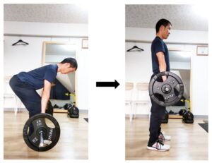 こうする事で自然とちょうど良い肘の角度になり背中の筋肉を効率よく鍛える事ができます。