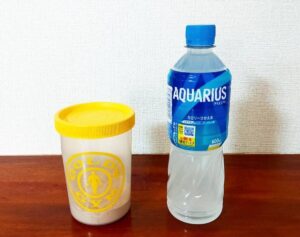 プロテインは日頃から飲んでいる物を飲むヨーグルトは、たまたま近くのスーパーで売っていた物を使用しています。